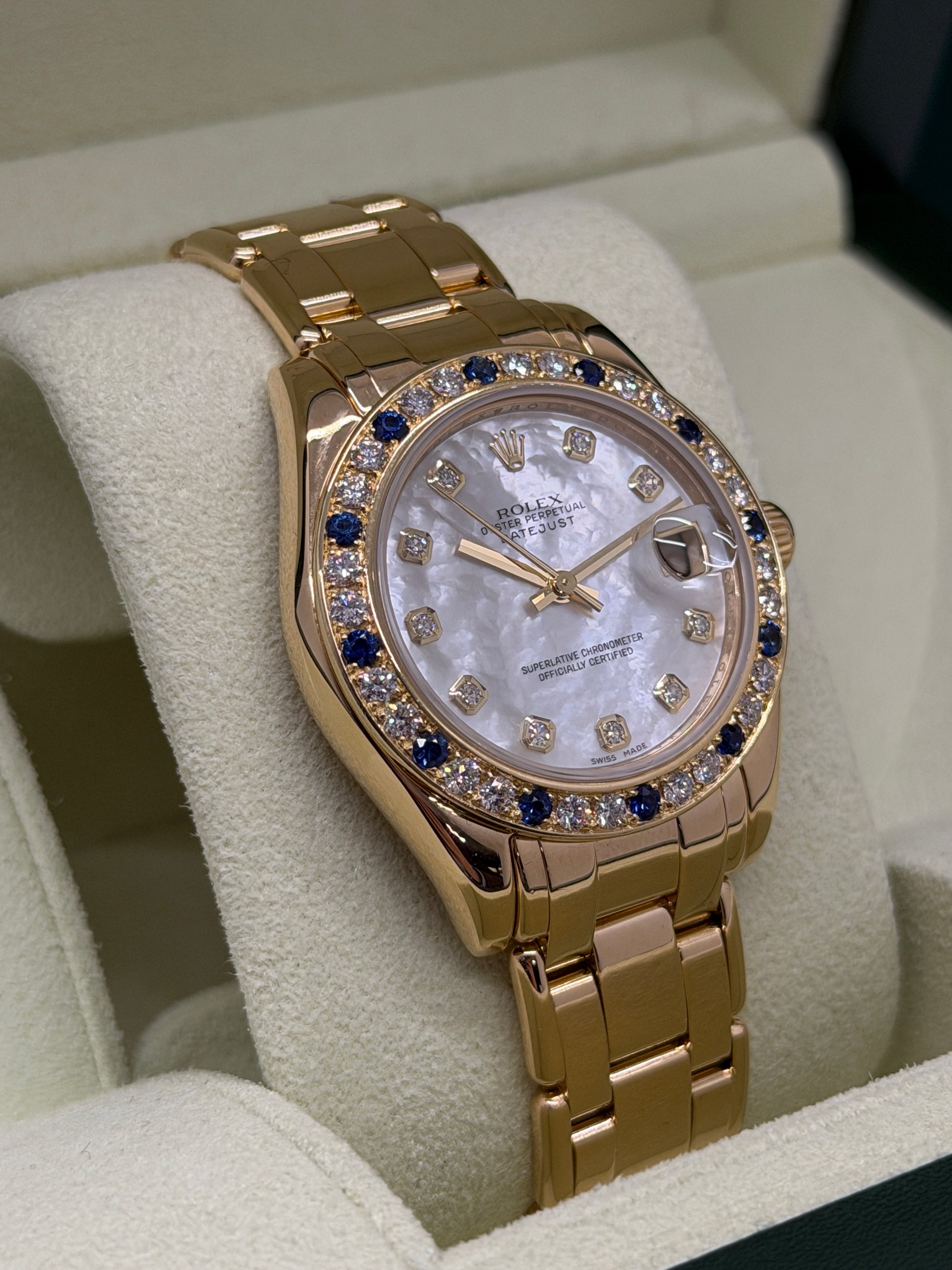 Rolex Datejust 31 - Pearlmaster - 18kt Gold - MOP & Diamond Dial - Ref 81208 - Original and Diamond Aftermarket Bezel - Year 2008